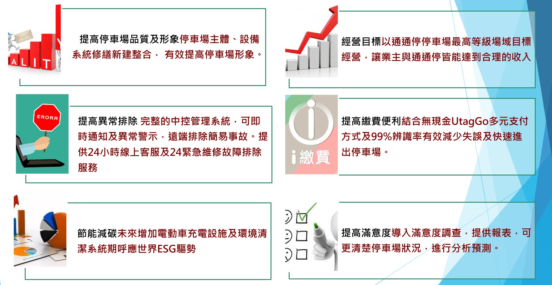 透過整合神通集團強大的技術能力,以無現金、自動化之智慧停車場為發展方針。